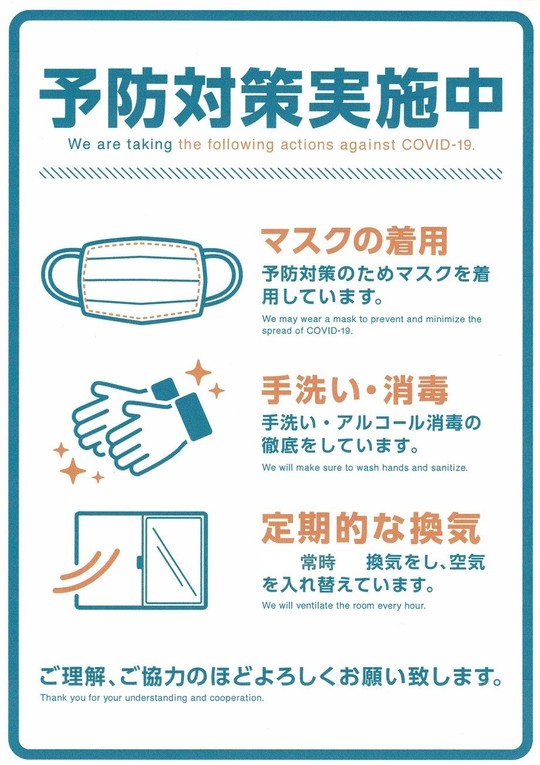 ・からだ工房meguri接骨院は、消毒、換気を常時行っております。