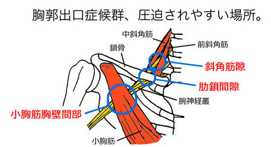 ③小胸筋症候群(過外転症候群)と呼ばれるが、総称して胸郭出口症候群と言います。