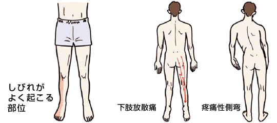 ・下肢にしびれや痛みが放散(坐骨神経痛)