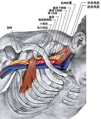 ②鎖骨と第1肋骨の間の肋鎖間隙