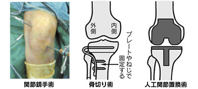 このような治療でも治らない場合は手術治療も検討します。これには関節鏡(内視鏡)手術、高位脛骨骨切り術(骨を切って変形を矯正する)、人工膝関節置換術などがあります。