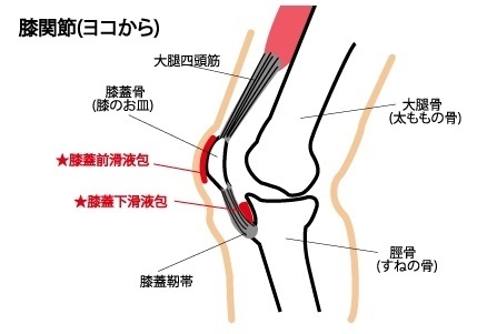 皮膚、筋肉、腱、靱帯と骨がこすれる部分で衝撃を吸収するクッションの役割をしています。)