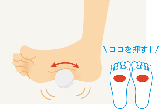 ゴルフボールで足底の筋肉をほぐします。