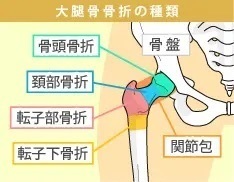 これらの中で注意しなくてはいけないのが、②③の大腿骨近位部の骨折です。