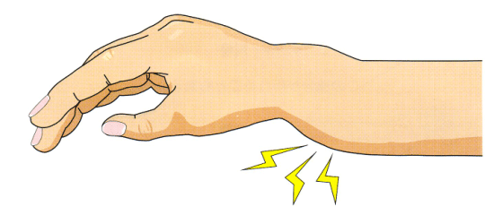 橈骨の手のひら側の正中神経が、折れた骨や腫れで圧迫されると、母指(親指)から薬指の感覚が障害されます。