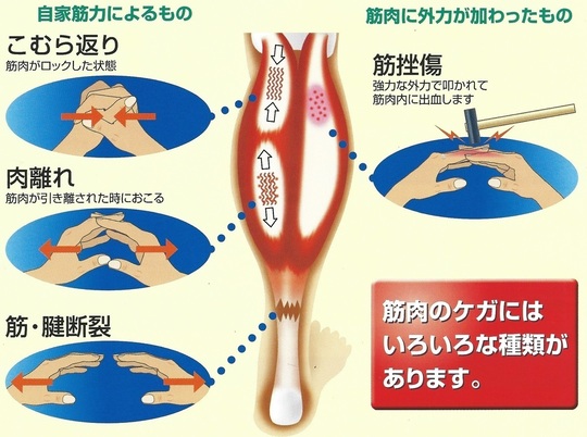 肉離れは、その重症度により安静、湿布、ぬり薬、内服薬などが必要になります。(薬は医科で処方となります)