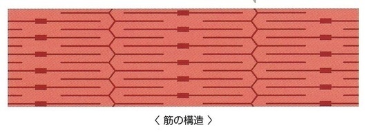 筋力は互い違いに並んだ筋線維の束が収縮してかみ合うと発生します。