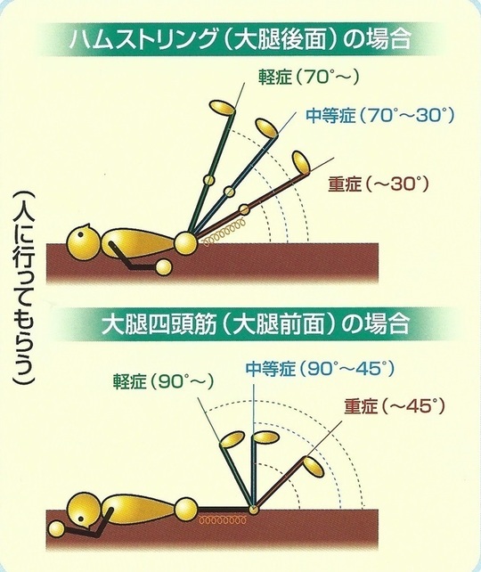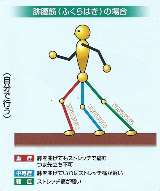 筋肉をストレッチした時の痛みで重症度がわかります。