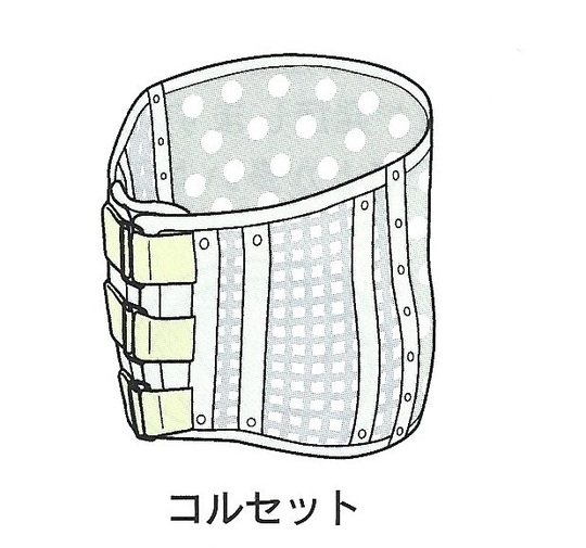 骨粗鬆症による軽度の骨折(圧迫骨折)の場合は、簡易コルセットなどの外固定をし、前屈(お辞儀する動作)を禁止し、比較的安静にします。