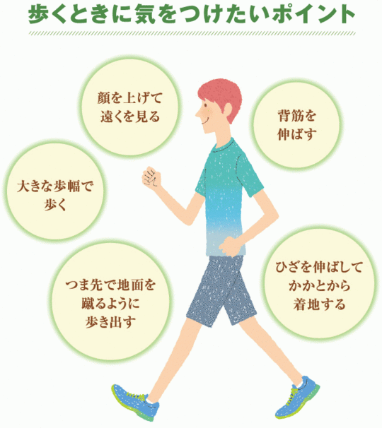 正しい歩き方に必要なことをあげます。