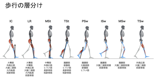 歩行周期ごとに使う筋肉