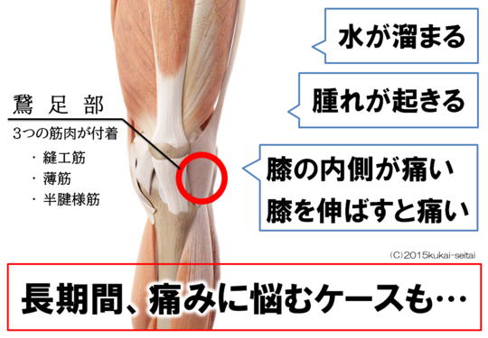 この部位にある滑液包に炎症が生じる状態が鵞足炎です。